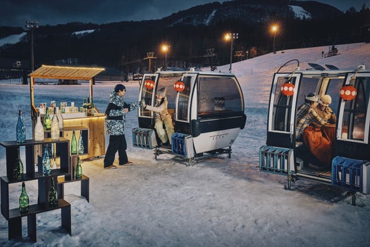 雪ん中酒場には、シンボルである巨大なかまくら酒場が登場します。雪壁に囲まれた席は、雪で作られた灯篭や日本酒瓶のランタンの優しい明かりに包まれ、雪国ならではの体験です。また、今年は、ゴンドラ席が加わり、人数や雰囲気に合わせて席を選ぶことができます。