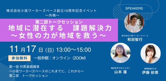 株式会社小高ワーカーズベース創立10周年記念イベント~共鳴~を11月17日(日)に開催いたします。一般の方はオンライン(ZOOM)で無料視聴が可能です。