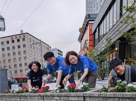 この度は新潟市「フラワーパートナー事業」に参画できたことを、支店のメンバー一同、大変嬉しく思っています。街中を自由で創造性の高い花・みどりの空間にし、新潟市の魅力をアピールするという企画で、新潟駅前に多くの花が咲き誇っているのを見ると嬉しくなります。自然と触れ合うことでリフレッシュにも繋がり、水やり等の作業を協力し合って行うことで支店のチームワークも高まりました。新潟県の皆さん、これからも宜しくお願いいたします。