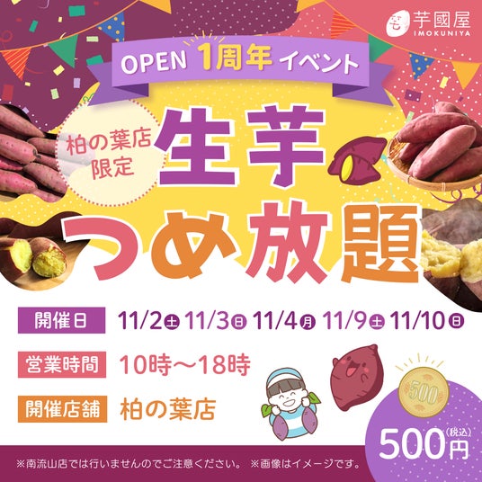 国産さつまいもで作る無添加の自然食品をお手頃価格で届けたい。創業からわずか2年、ネット通販で1日1万件以上の注文を記録し、楽天市場で総合1位を獲得した芋國屋が常設店の1号店としてオープンした「芋國屋 柏の葉店」(千葉県柏市十余二164-77)が2024年11月5日で1周年を迎えます。
