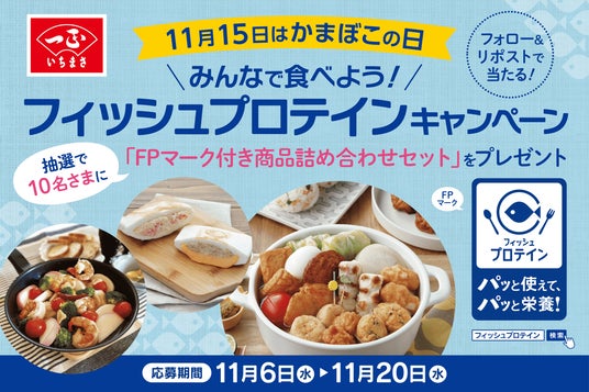 11月15日の『かまぼこの日』を記念して、「フィッシュプロテインセット(1個)」をプレゼントします。いちまさ公式Xアカウント(@ichimasa_jp)をフォロー&キャンペーン投稿をリポストするだけで応募完了!抽選で10名さまに賞品が当たります。