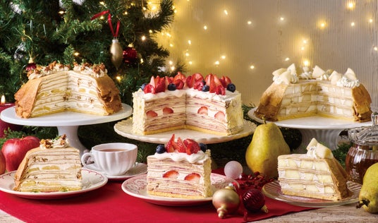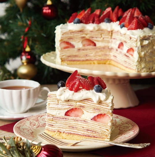 りんご、ベリー、洋梨など、心躍るクリスマスシーズンにふさわしい華やかなミルクレープを提案。