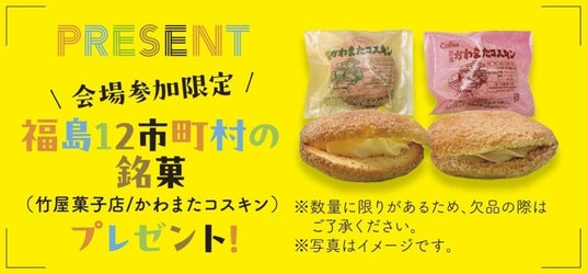 会場参加された方には、来場者特典として福島12市町村内の川俣町の銘菓「かわまたコスキン」をプレゼントします。