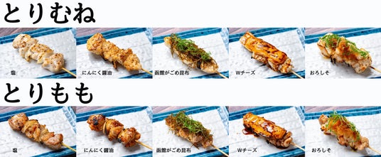 新メニューは、Wチーズやにんにく醤油など、シンプルながらも絶妙な風味が引き立つ一品に仕上げています。それぞれの串はとりむね肉串の新しい魅力を存分に楽しんでいただけます。