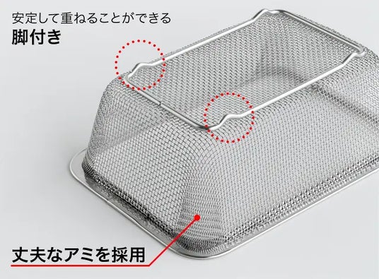 電子レンジ対応のバットが付いた「耐熱クリアバット&ザル 9点セット」を開発しました!電子レンジ加熱できることで調理の幅も広がり、さらに使いやすくなりました。