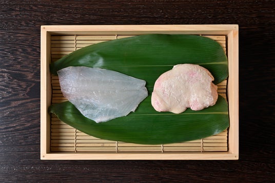 全長30cmほどの平たい魚体からとれる身は少ないが、巨大な肝をたたえる皮剥。その肝はなめらかでとろけるような甘さと旨みがあり、「海のフォアグラ」とも称される。