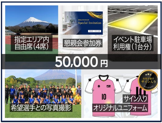Mt. FUJI Football Dream Festival 指定エリア内自由席(4席)+ オリジナルユニフォーム(サインなし) + 希望選手との写真撮影 + 会場駐車場 35,000円