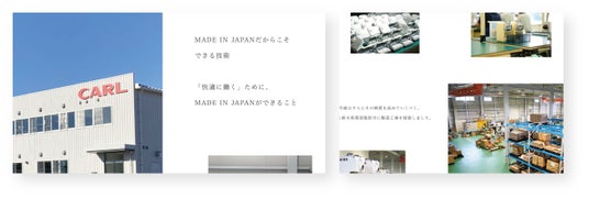 2.「自社工場紹介」ページの新設 ▶︎https://www.carl.co.jp/company/factory/