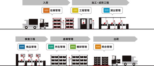 ※生産現場システムとは、製造・制御・在庫・作業工程・検品などの生産管理や、物流管理をサポートするシステムを示します。