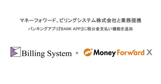株式会社マネーフォワードは、ビリングシステム株式会社と業務提携し、同社のスマートフォン決済サービス『PayB』を当社のバンキングアプリ『BANK APP』に組み込むことを決定しました。『PayB』との連携により、払込票を使った公共料金や税金などの支払い手続きを『BANK APP』上で行えるようになります。本機能は、2025年春の栃木銀行『とちぎんアプリ』を皮切りに、高知銀行『こうぎんアプリ』ほか、複数の金融機関で順次提供予定です。