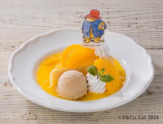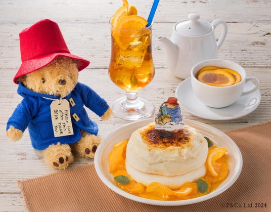 「パディントン(TM)のティータイム」をテーマに、パディントン(TM)の大好物マーマレードジャムを使った人気のパンケーキの「パディントン(TM)のオレンジブリュレパンケーキ」をはじめ、爽やかなオレンジと華やかな香りが広がる紅茶を組み合わせた、ティータイムを彩るデザートメニューをご用意しました。