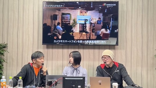 iOSとAndroidに対応する『WRIDGE CAM(リッジカム)』アプリで、スマートフォンの映像も簡単に取り込みが可能です。PTZカメラ映像とスマホ映像を組み合わせ、さまざまなカメラ視点からの配信が行えます。