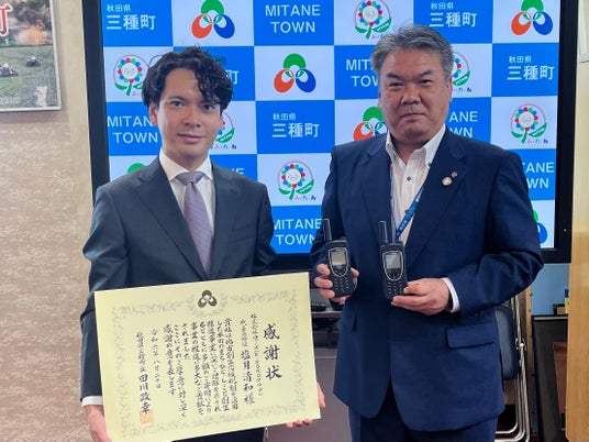 全国で調剤事業などを展開する「E―BONDホールディングス」グループ(代表取締役社長:塩月 清和)は、全国約100自治体に災害時や非常時に役立つ衛星携帯電話を寄付したことを発表しました。この取り組みは、地域の防災体制を強化し、緊急時の迅速な情報伝達を支援することを目的としています。このプロジェクトを推進した有限会社アクアテック(同グループ、代表取締役社長:大和田 健斗)は、全国の自治体を訪問して贈呈式を行い、東北では8自治体(秋田県由利本荘市、能代市、三種町、横手市、山形県山形市、長井市、宮城県塩竈市、岩手県雫石町)を訪問しました。