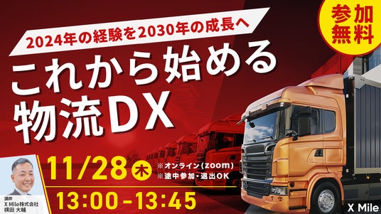 2024年の経験を2030年の成長へ、これから始める物流DX」と題し、他社状況や今後何をすべきかを紹介~2024年11月28日(木)13時00分~13時45分 オンライン(ZOOM)~
