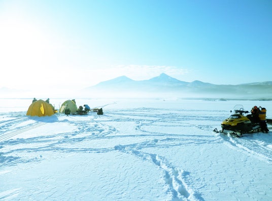 体験内容:凍った檜原湖で、一面に広がる銀世界を散策。磐梯山の噴火によりできた美しい島々が浮かぶ桧原湖で、寒冷地の湖に多く棲息するワカサギの釣り体験などを通して、自然の厳しさや美しさを肌で感じることができます。