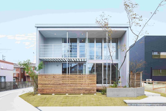 吹抜けがある開放的な一室空間で、住まい手が思うままに住まいを「編集」する。そんな自由な発想を木造住宅でかたちにした、「無印良品の家」第一弾が「木の家」です。強度が安定した構造用集成材によるSE構法を採用。大きな開口部と深い庇がある、箱のようなすっきりとした外観を持ち、太陽光と通風を最大限に活用する、環境負荷の少ない合理的な考えで設計されました。南向けの庇(ひさし)は、季節によって異なる日射を調整し、夏は直射日光を遮り、冬は温かな陽光を室内の奥まで導きます。温められた放射熱は、外断熱方式で外に逃がさず、少ないエネルギーで快適に暮らせる省エネ性能の高さも特長です。2006年度グッドデザイン賞受賞、2017年度グッドデザイン・ロングライフデザイン受賞。