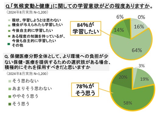 - 多くの看護職者が、「気候変動と健康」に関しての学習意欲があると回答した(84%)