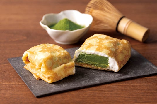 クレープに宇治抹茶パウダーを入れた抹茶テリーヌ、ホイップクリーム、抹茶チョコを入れ包んだ抹茶の味わいが楽しめるクレープです。