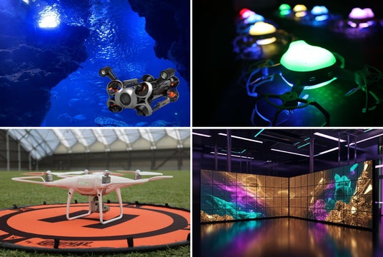 LED搭載ドローンが屋内空間に描き出す光のショー。