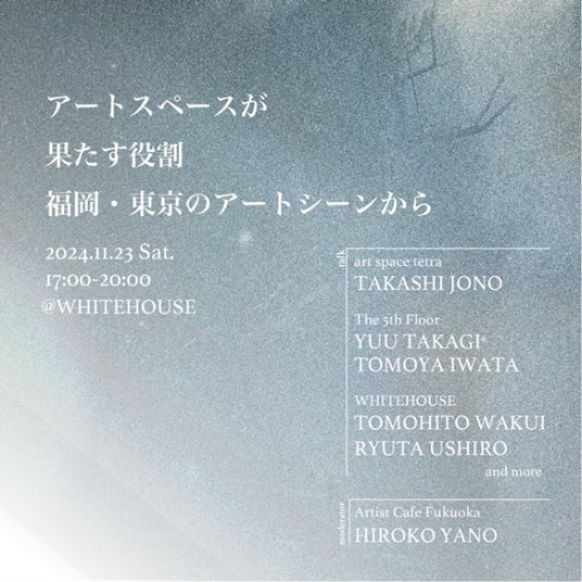 カルチュア・コンビニエンス・クラブ株式会社が福岡市から委託を受け運営するアーティストの成長・交流拠点「Artist Cafe Fukuoka」(福岡市中央区城内)は、福岡のアートシーンやArtist Cafe Fukuokaの活動を紹介しながら、東京のアート関係者との意見交換を通じて、アーティストにとってより有機的で支援的な場作りに関してのトークイベント「アートスペースが果たす役割 福岡・東京のアートシーンから」を11月23日(土)にWHITEHOUSEにて行います。