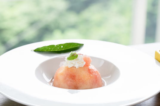 種類によって異なる、固さ、甘みと酸味のバランスなどを考えながら、生産者との話し合いや試作を繰り返し、当館料理長が1年かけて完成させ、昨年の福島市の「ふくしまピーチホリデイ2023」に合わせて提供を開始、好評のため今年も実施します。