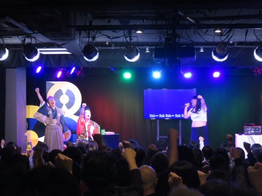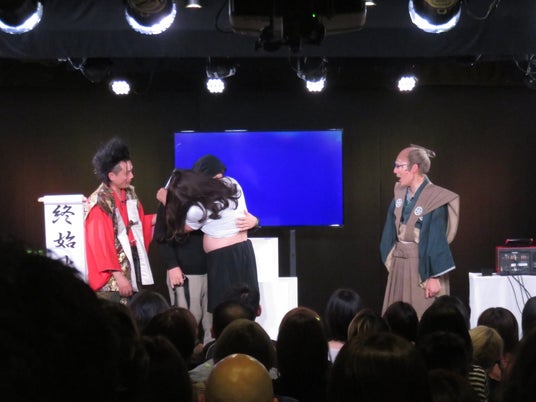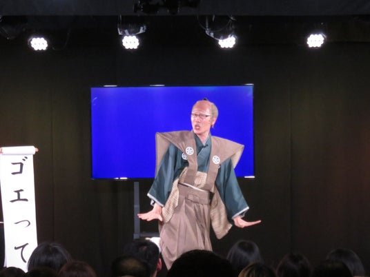 あっという間の1時間となった最後のお題は「宇宙」。RGは『TSUNAMI』(サザンオールスターズ)に乗せてJAXAで知った「頭をちょっと下げて寝ると宇宙にいるときと同じ」(頭側を6度下に傾け横たわると宇宙での重力に近い状態を作ることができる)という知識を披露。武将様は「今日の銀狼(RG=シルバーウルフ)の歌声、今日の皆々様の笑い声、宇宙に届きがち」と色紙にしたため割れんばかりに拍手が沸き起こりました。最後の戦国諸芸はRGが大好きな「終始ここから」の「悲しき刻」。武将様とゴエ爺が紙芝居で繰り出す、戦国にも今の世にも通じる少し切なきあるあるに観客は笑いっぱなし。エンディングでRGは「10年やってるこのイベントが一大コンテンツになったことをうれしく思います」と締めの挨拶。すると、サプライズで摩訶不思議珍道中からRGに色紙のプレゼントが。武将様の「めでたきや、めでたきや」という口上で長い1日が幕を閉じました。