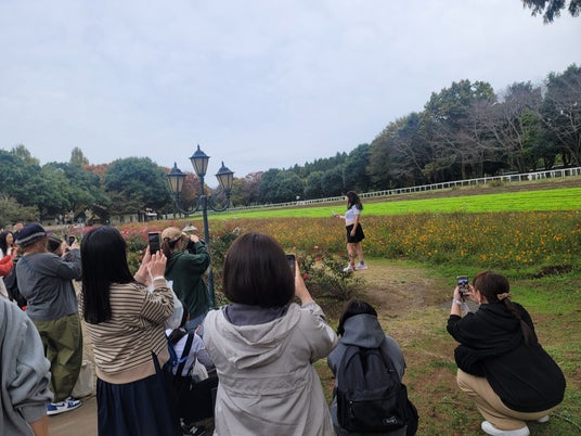 代表を探す女性をよりかわいく撮影しようと奮闘する参加者たち