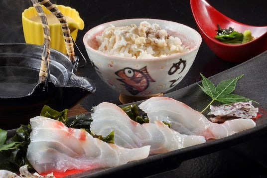 地元で水揚げされた真鯛をふんだんに使った人気の「鯛めし朝食」。地場産食材をふんだんに使用したお料理に加え、鯛の骨をしっかりと焼き、丁寧に取った出汁の旨みを堪能できるこだわりの「鯛茶漬け」をご用意いたします。まずは、鯛めしで1杯。次に鯛の刺身と一緒に2杯。最後に鯛出汁をご飯にかけて3杯と3度おいしい朝食を提供いたします。