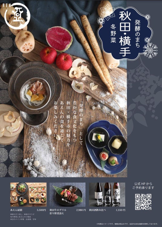 モスバーガーを展開する株式会社モスフードサービス(代表取締役社長:中村 栄輔、本社:東京都品川区)は、2024年11月20日(水)~2025年3月11日(火)の間、四季の旬菜料理を提供するレストラン「あえん」の都内4店舗にて、秋田県横手市の食材を活用した、あえんの冬メニューをご提供します。