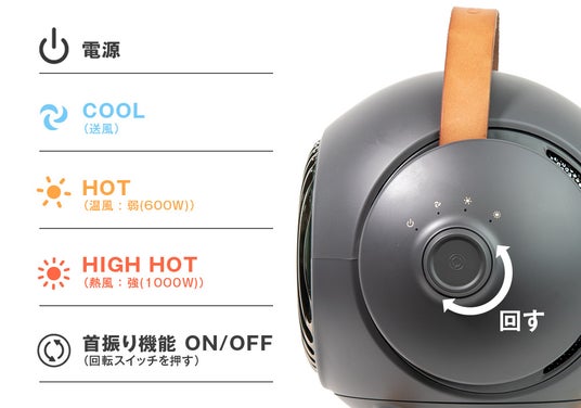 消費電力 :送風:2.5W-3.5W / 弱:600W / 強:1000W