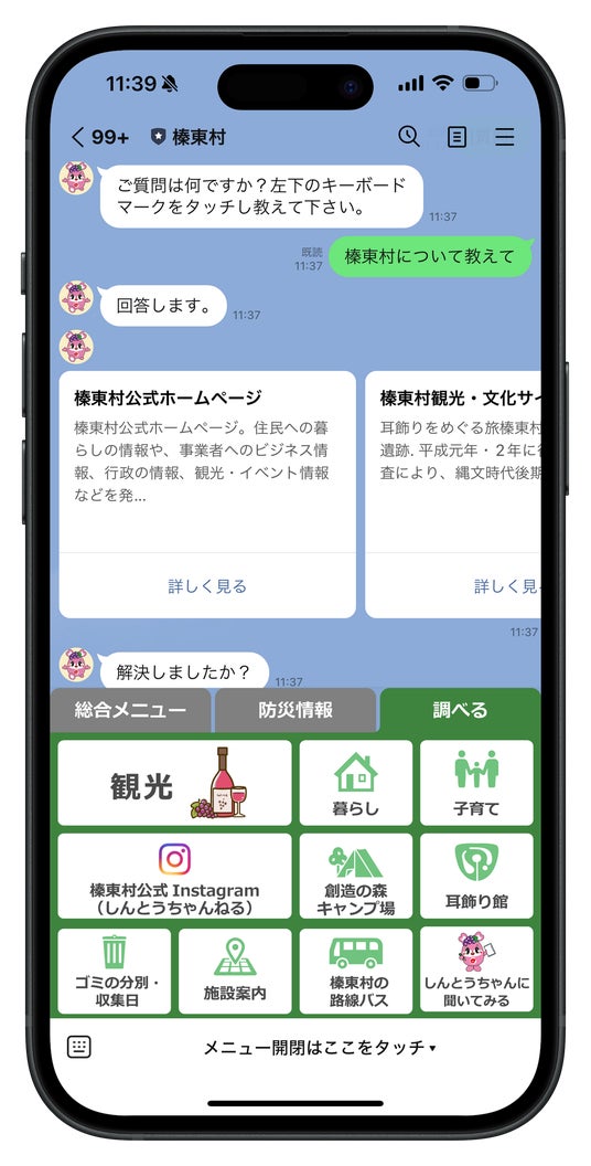 また、【しんとうちゃんに聞いてみる】から、24時間365日いつでも質問に回答してくれます。