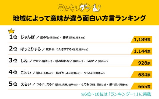 株式会社CMサイト(本社:大阪府大阪市、代表取締役社長:柴原 誠治)が企画編集する、「ちょっと気になる」を調べたランキングサイト『ランキングー!(https://rankingoo.net/)』は、『地域によって意味が違う面白い方言ランキング』の結果を、投票者のコメント付きで紹介する記事として公開しました。