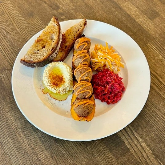 焼きナス、ファラフェルなどがのったヴィーガンプレート