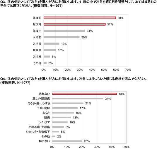 就寝前に気になる冷え6割 冷えで眠れない4割