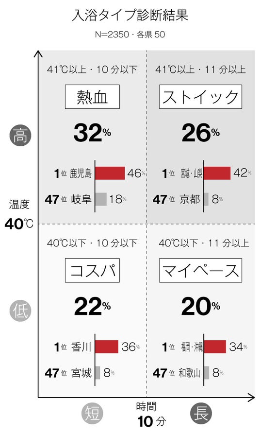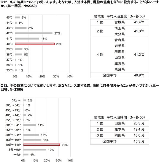 - 入浴方法40℃10分 山梨は熱風呂・長風呂好き?