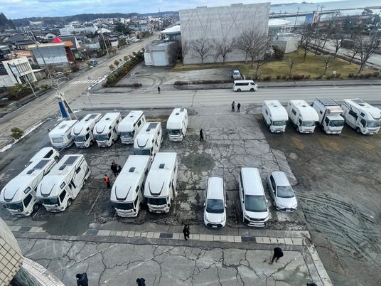 令和6年1月1日に発生した「令和6年能登半島地震」では、1月5日に石川県からの要請を受け、会員企業に被災地派遣車両の募集を行い、1月11日より石川県珠洲市、輪島市への応援自治体職員の宿泊施設として、 キャンピングカー60台を派遣しました。被災地での宿泊場所の確保が難しい環境の中で、派遣したキャンピングカーは、全国からの応援職員の宿泊施設として活用されています。