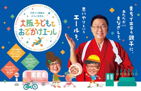 子どもとのおでかけがもっと楽しくなるように、大阪のまちをもっと好きになってもらえるように、というコンセプトのもと、大阪は子育て家族のおでかけにやさしいまちをめざし、「大阪子どもとおでかけエール」というキャッチコピーを掲げ、機運醸成を図ります。