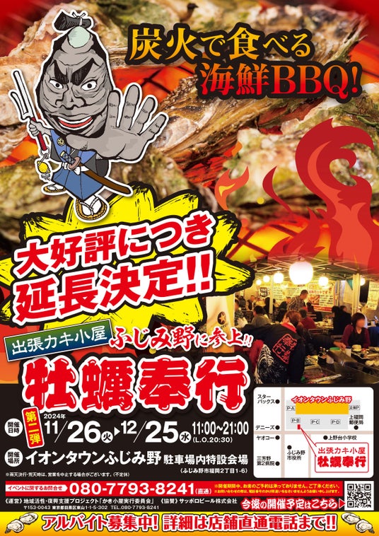 ▶︎東北の牡蠣を食べてもらうため、全国100箇所以上で開催している出張カキ小屋「牡蠣奉行」
