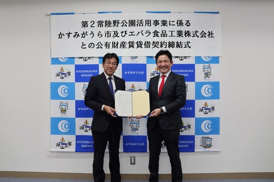 エバラ食品工業株式会社(本社:神奈川県横浜市、代表取締役社長:森村 剛士)は、茨城県かすみがうら市(宮嶋 謙市長)と2024年11月20日(水)に、第2常陸野(ひたちの)公園(茨城県かすみがうら市中佐谷(なかさや)671-1)を活用したアウトドア施設「エバラアウトドアダイニング(仮称)」の開業に向け、公有財産賃貸借契約を締結しました。今後は、2025年秋の開業をめざして準備を進めてまいります。