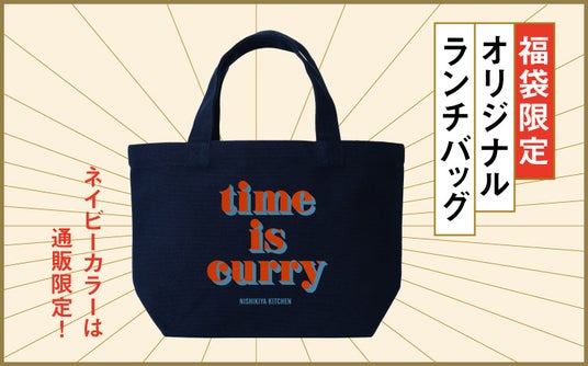 福袋限定で、ニシキヤキッチンオリジナルの「time is curry」ランチバッグを作りました。ネイビーは通販限定カラーです。