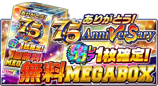 期間中に一度ログインするだけで、SSレア選手が1枚確定で手に入る「ありがとう!7.5 Anniversary SSレア1枚確定! 1回無料 MEGA BOX」をプレゼントいたします。