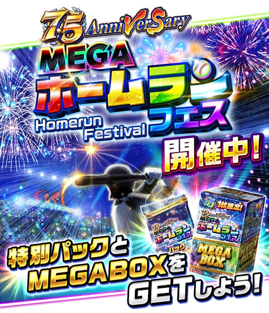 ※「MEGAホームランフェスパック」「SSレア1枚確定!MEGAホームランフェス MEGA BOX」のプレゼント受け取り対象者は期間中にミニゲーム「ホームランフェス」をプレイした方となります。