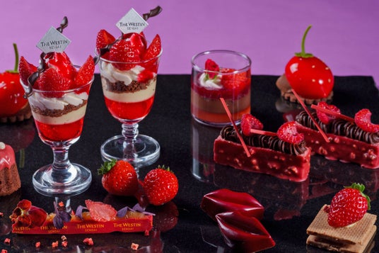春への移り変わりを高層階から眺めながら、甘い香りのいちごと濃厚なチョコレートのスイーツで麗らかなティータイムをお過ごしください。