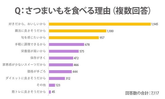 ●さつまいもの喫食理由は「好きだから、おいしいから」「腸活に良さそうだから」「旬を感じたいから」が上位にランクインしました。