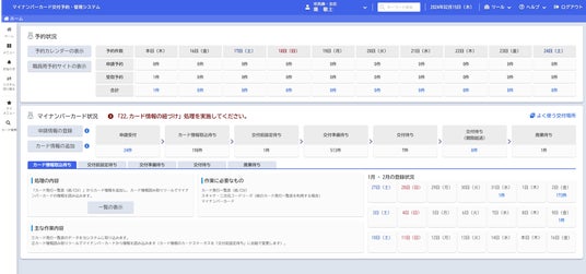 「マイナンバーカード交付予約・管理システム」 職員用の管理画面