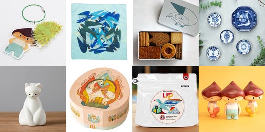 絵本、ハンカチ、ポストカード、文具類やコーヒー、お菓子など、福田さんのグッズをできるだけたくさん会場に取りそろえます。福田さんのイラストがプリントされた缶や箱にお好きな商品を詰め込んで、オリジナルの贈りものセットをつくるのもおすすめです。