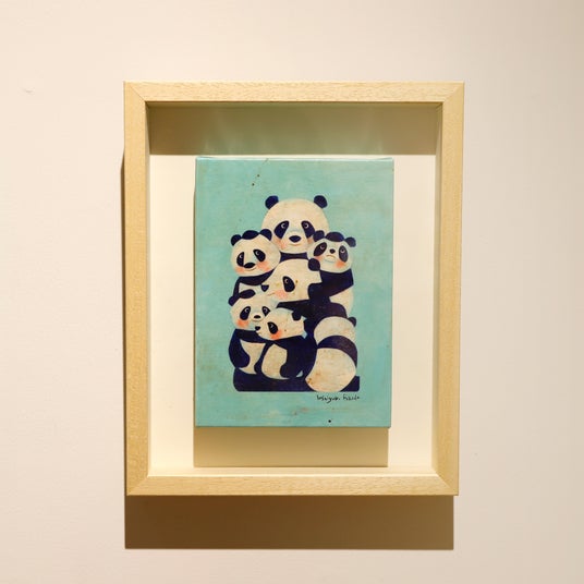また「ほぼ日曜日」の「大福田展」会場では、本の表紙、CDジャケット、ハンカチの柄、お菓子のパッケージなど、さまざまなアイテムのために描かれた原画を約50点ご覧いただきます。最終工程でインスタントコーヒーを表面にまぶし、それをニスで溶かしながらコーティングしていく福田さん独自のエージング技法を含めて、ぜひ「原画」をおたのしみください。