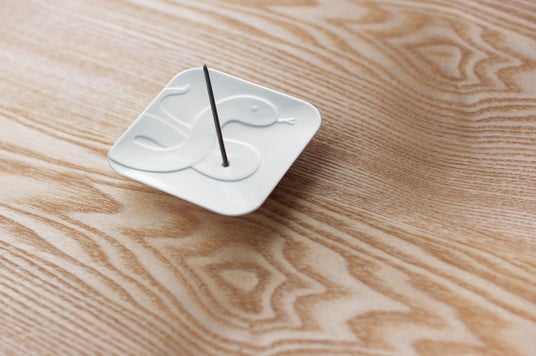 巳の柄の香皿に沈香のお香6本がついたセット。