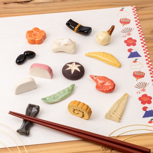 伊達巻や数の子など、おせちの具材をモチーフにした箸置き。