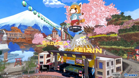 静岡競輪場がバーチャルマーケットに初出展!2024年12月28日から30日に開催される「KEIRINグランプリ2024シリーズ」のPRおよび競輪の認知拡大を目的として、バーチャルマーケット内の「パラリアルフジヤマ」にブースを出展します。ブース内にはミニチュアの競輪コースとオッズ表示を設置。本物さながらのレース展開を繰り広げる競輪選手の3Dアバターを間近で観戦しながら、投票体験を楽しむことができます。投票が見事的中するとコインが付与され、静岡競輪のマスコットキャラクター「レーサーパンダ」の3Dアバターをはじめとした3Dモデルと交換することが可能です。